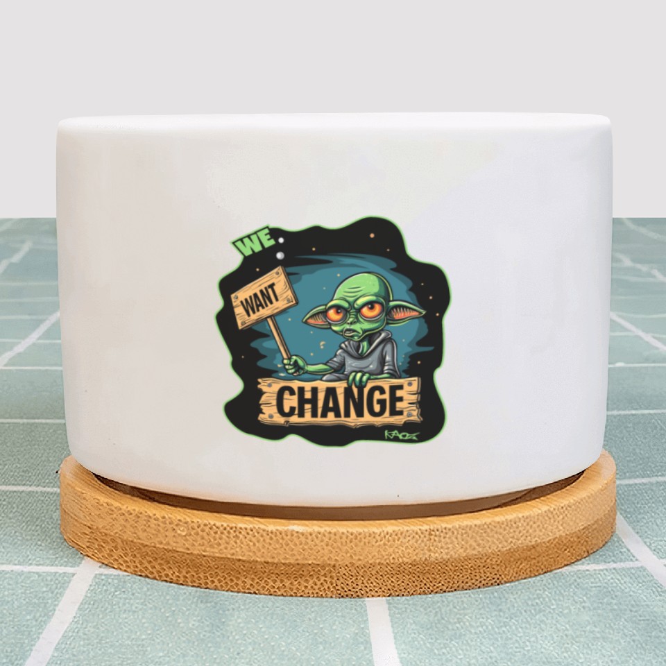 Fed Up Green Martian Alien Protest: We Want Change Plant Pots