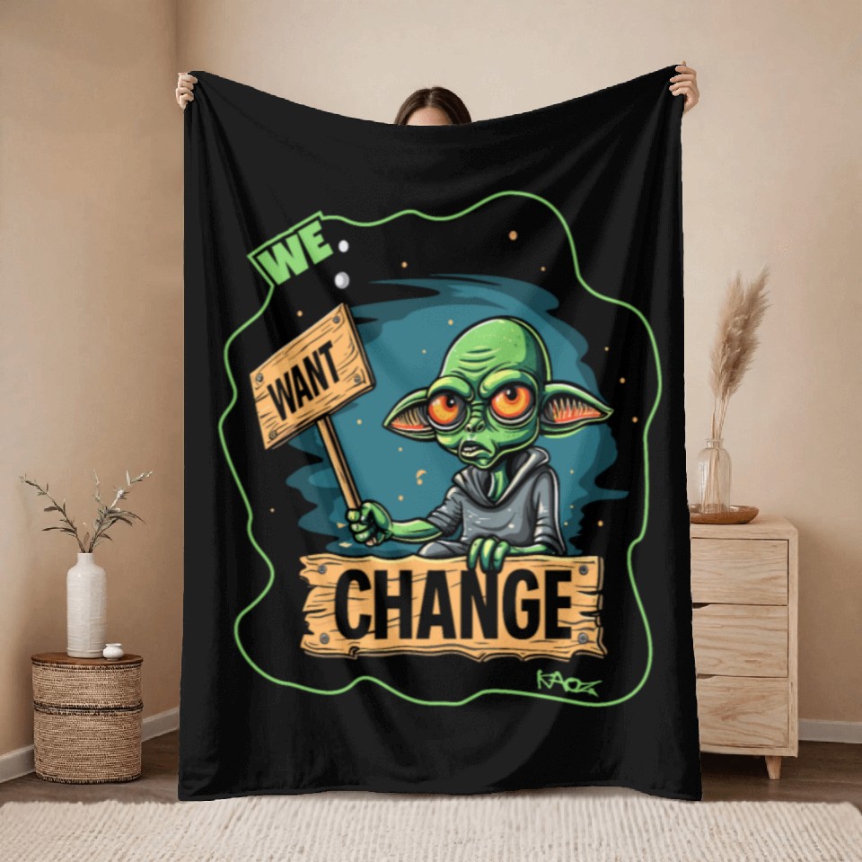 Buy eye-catching Fed Up Green Martian Alien Protest: We Want Change Throw Blankets or see more Throw Blankets products at Printblur shop now to explore many surprises from our shop!