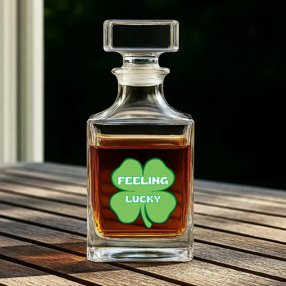 Shop for attractive FEELING lucky funny St. patty's day Whiskey Decanters or see more Whiskey Decanters products on https://printblur.com right now!