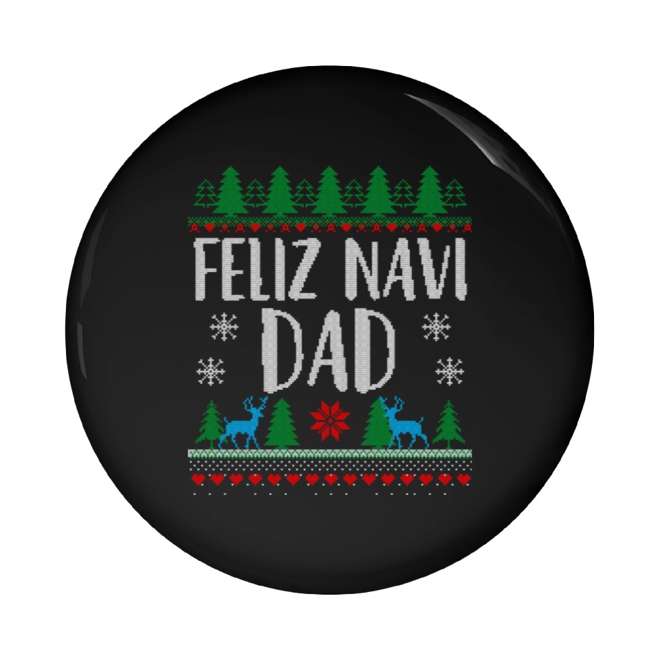 You're searching for a one-of-a-kind product Feliz NAVIDad Funny Holiday Ugly Christmas Themed Pin Buttons For Black belong theme Pin Buttons at Printblur