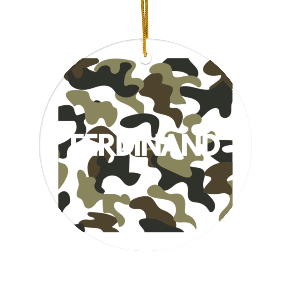 The product unique design you searched for is Ferdinand Name Ceramic Ornaments Men Good Quality Camouflage For WHITE belong theme Ceramic Ornaments at Printblur
