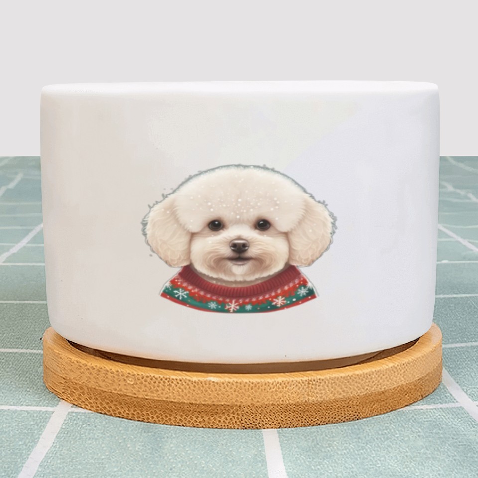 You are viewing one of the trendiest products Festive Bichon Frise in a Christmas Sweater Plant Pots For WHITE belong theme Plant Pots at Printblur