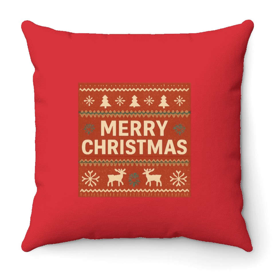The product unique design you searched for is Festive Christmas Reindeer and Snowflakes Print Throw Pillows For Cover Only Red belong theme Throw Pillows at Printblur