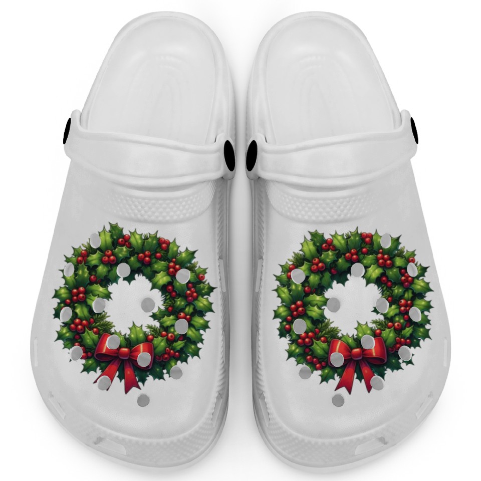 Buy eye-catching Festive Foliage: Classic Christmas Wreath Clogs or see more Clogs products at Printblur shop now to explore many surprises from our shop!