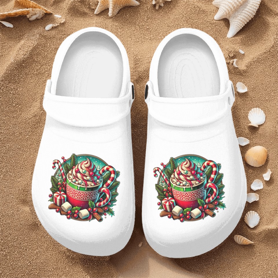 You're searching for a one-of-a-kind product Festive Hot Cocoa Christmas Delight Nurse Clogs For Men WHITE belong theme Nurse Clogs at Printblur