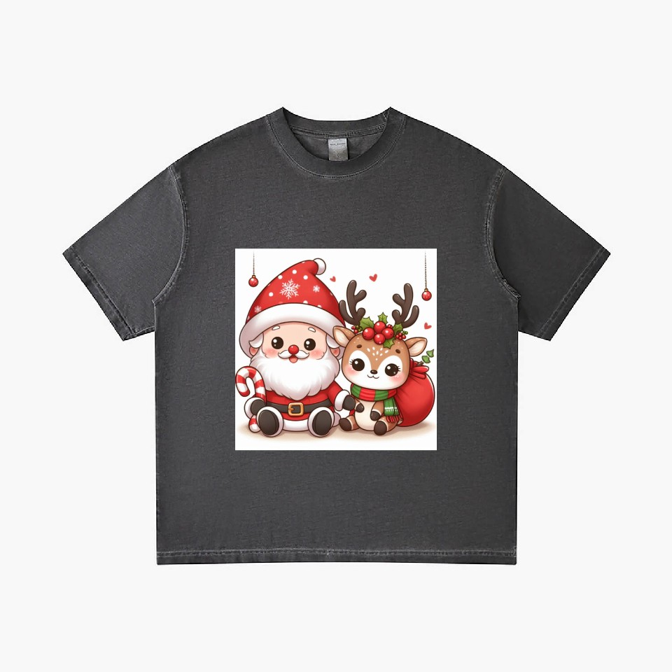 You are viewing one of the trendiest products Festive Santa and Reindeer Illustration Gradient T Shirts For Men Washed Black belong theme Gradient T-Shirts at Printblur
