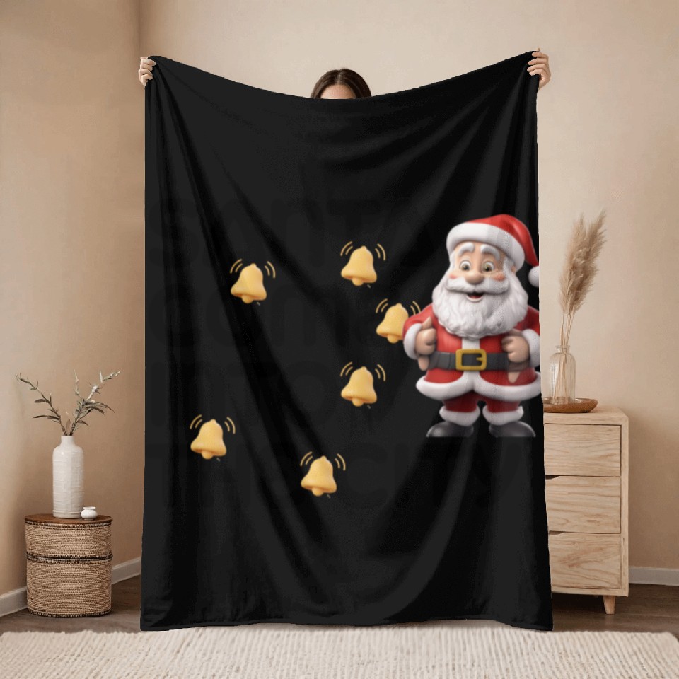 You're taking a peek at the product Festive Santa with Jingle Bells Design Throw Blankets For Black belong theme Throw Blankets at Printblur