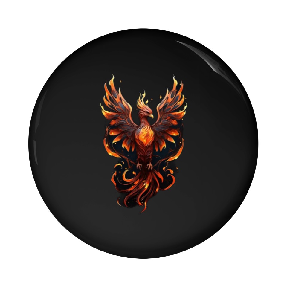 You are seeing a unique and impressive product Fiery Phoenix Tattoo Design - Flight of Rebirth Pin Buttons For Black belong theme Pin Buttons at Printblur