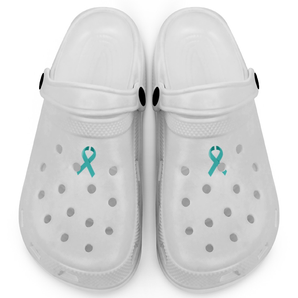 You are viewing an exclusive and elegant product Fighter Christian Cross Warrior Ovarian Cancer Clogs For Kids WHITE belong theme Clogs at Printblur