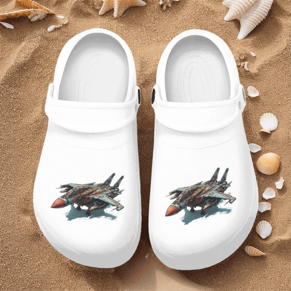 You're looking at the eye-catching product FIghter jet Nurse Clogs For Men WHITE belong theme Nurse Clogs at Printblur