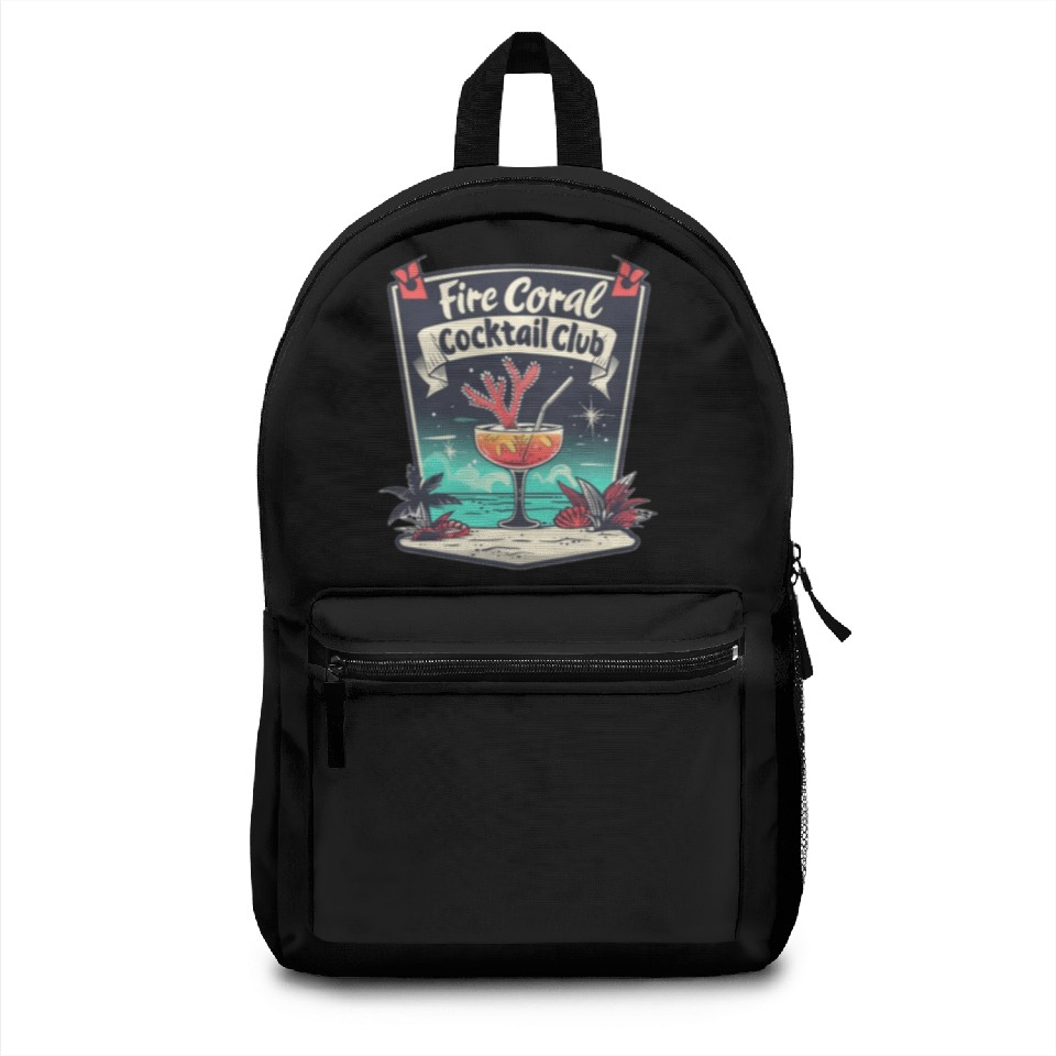 You're taking a peek at the product Fire Coral Cocktail Club Backpacks For Black belong theme Backpacks at Printblur