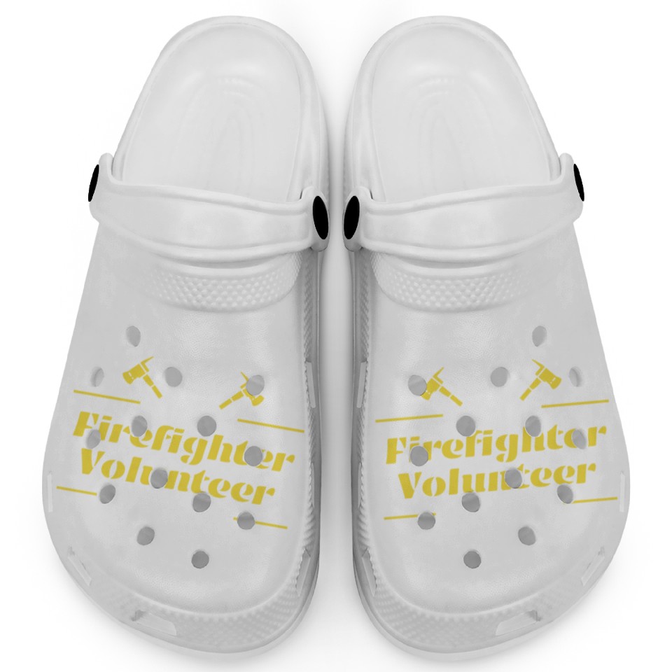 You are viewing an exclusive and elegant product Firefighter Volunteer Pride and Honor Clogs For Kids WHITE belong theme Clogs at Printblur