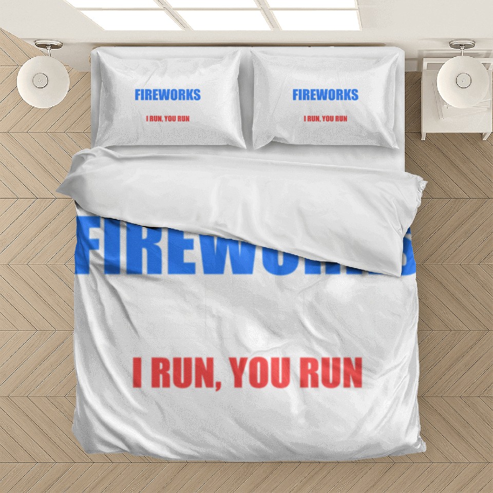 You are viewing an exclusive and elegant product FireworDirector I Run You Run July 4 Meme Bedding Sets For WHITE belong theme Bedding Sets at Printblur