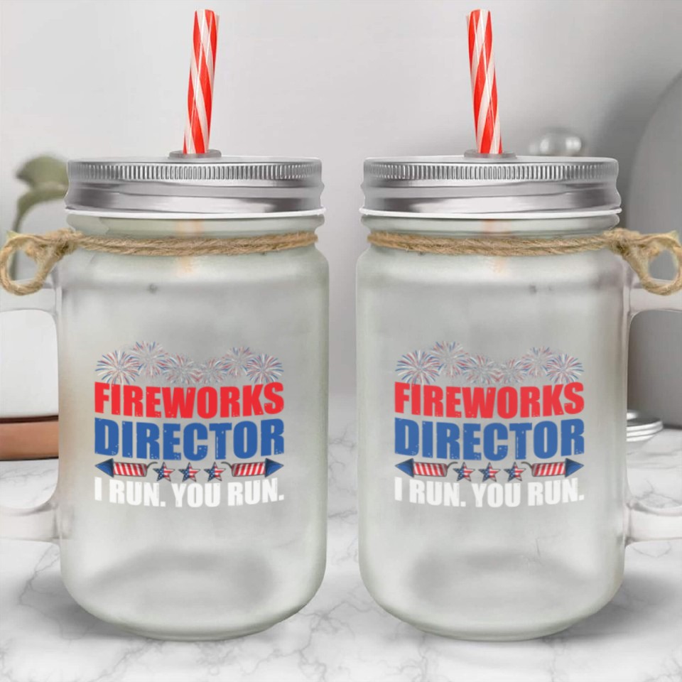 You are seeing a unique and impressive product Fireworks Director I Run You Run America Flag Mason Jar Cups For belong theme Mason Jar Cups at Printblur