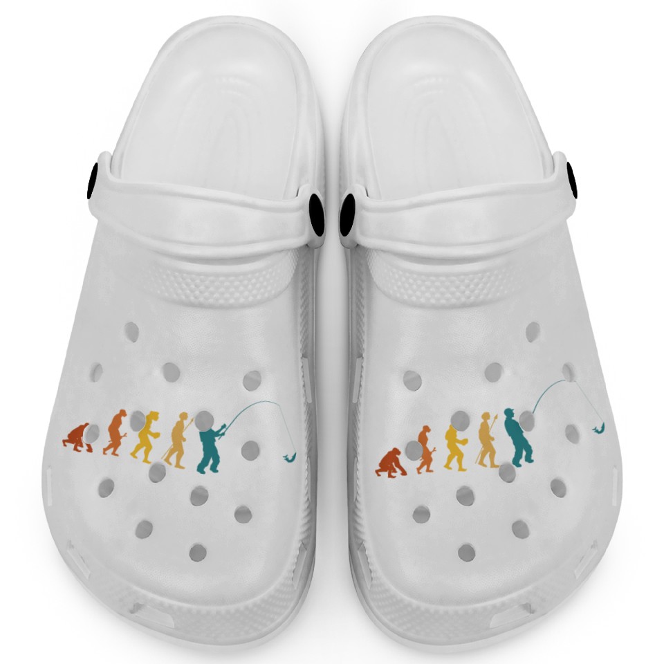 You are viewing an exclusive and elegant product Fisherman Evolution Funny Life Tree Retro Fishing Clogs For Kids WHITE belong theme Clogs at Printblur