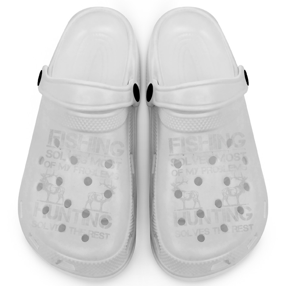 You are viewing one of the trendiest products Fishing Deer Hunting Solve Problems Funny Fishing Clogs For Kids WHITE belong theme Clogs at Printblur