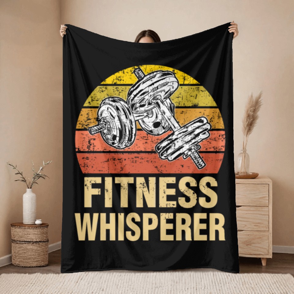 You're looking at the eye-catching product Fitness Whisperer Funny Weightlifting Gym Workout Throw Blankets For Black belong theme Throw Blankets at Printblur