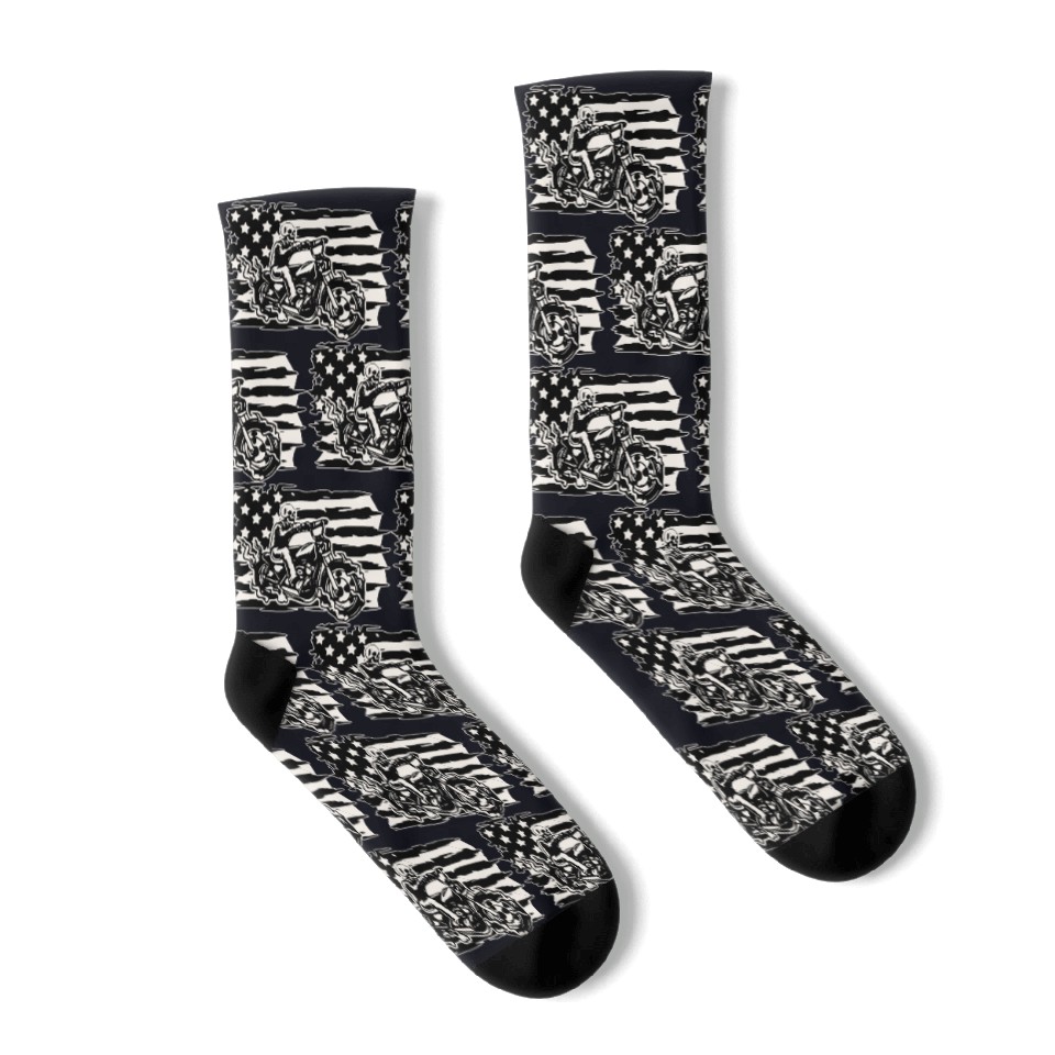 Own fascinating Flaming Skull American Biker © WhiteTigerLLC.Com Socks or see more Socks products now from Printblur shop to enjoy your shopping time!