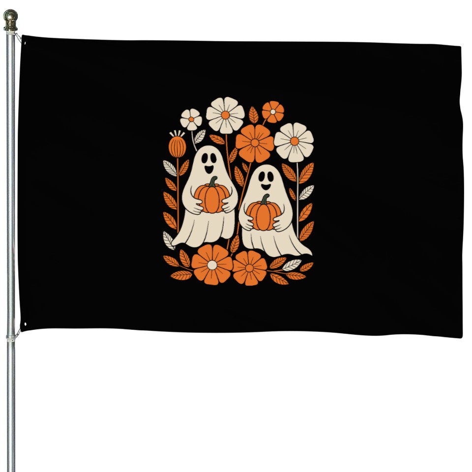 Shop for attractive Floral Halloween Vintage Ghost Flower Pumpkin House Flags or see more House Flags products on https://printblur.com right now!
