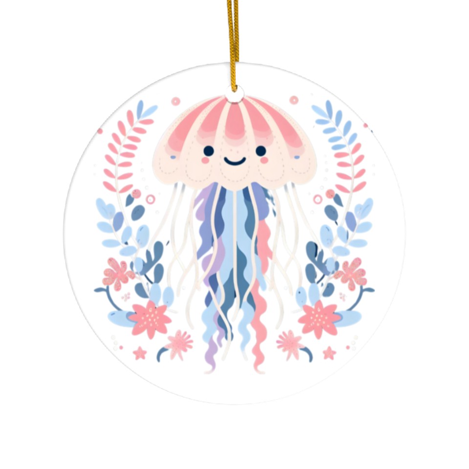 You are viewing an exclusive and elegant product Floral Jellyfish Delight Ceramic Ornaments For WHITE belong theme Ceramic Ornaments at Printblur