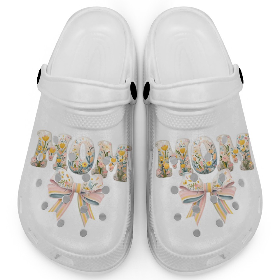 Floral MOM Design with Pastel Bow Clogs