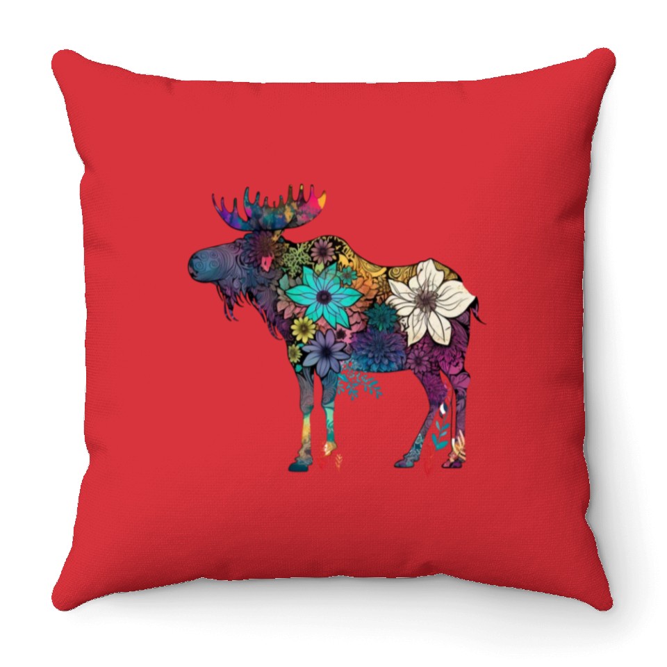The item hot trend you're looking at is Floral Moose Elk Deer Wild Animal Watercolor Throw Pillows For Cover Only Red belong theme Throw Pillows at Printblur