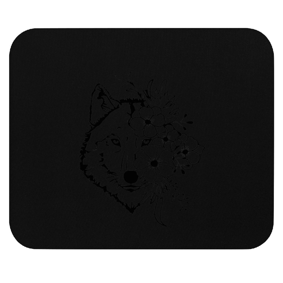 You're looking at the eye-catching product Floral Wolf Vintage Flowers Wolf Face for Wolves Mouse Pads For Black belong theme Mouse Pads at Printblur