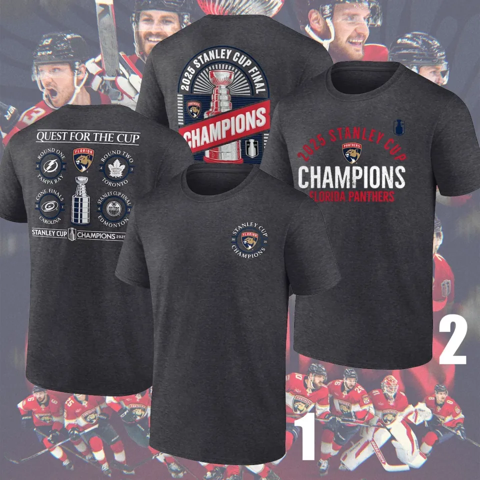 You are shopping for a stunning and trendy product Florida Panthers 2025 Stanley Cup Champions Double Sided T-Shirt For Men Black belong theme Double Sided T-Shirts at Printblur