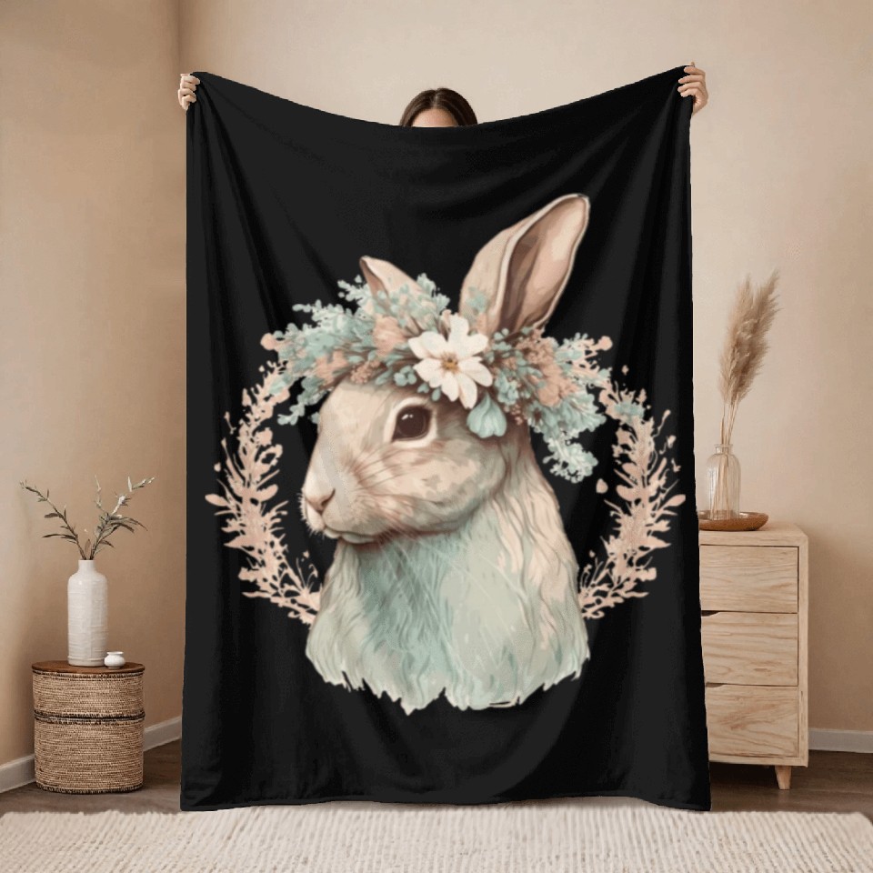 You are viewing one of the trendiest products Flower Crown Bunny Rabbit Floral Farm Animal Pet Throw Blankets For Black belong theme Throw Blankets at Printblur