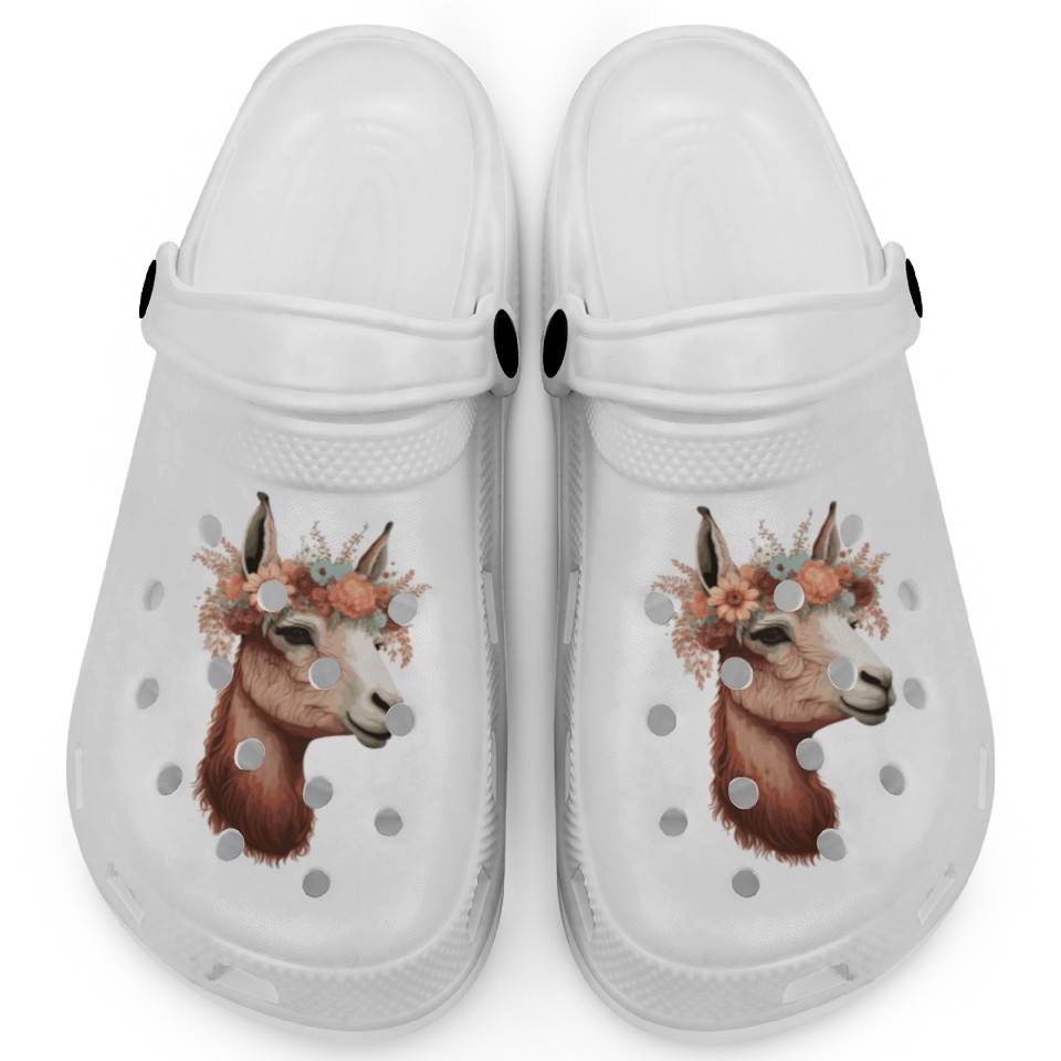 Flower Crown Llama Alpaca Floral Farm Animal Pet Clogs