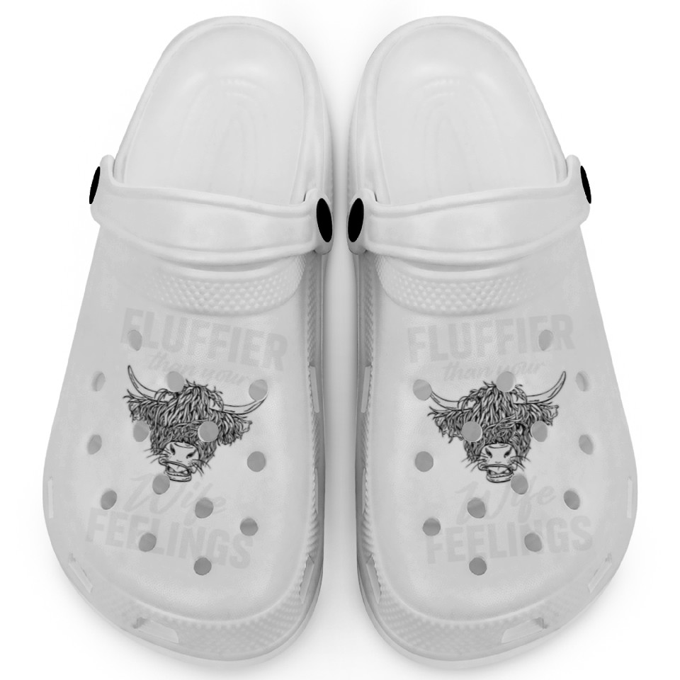 Fluffier Than Your Wife Feelings Highland Cow Clogs