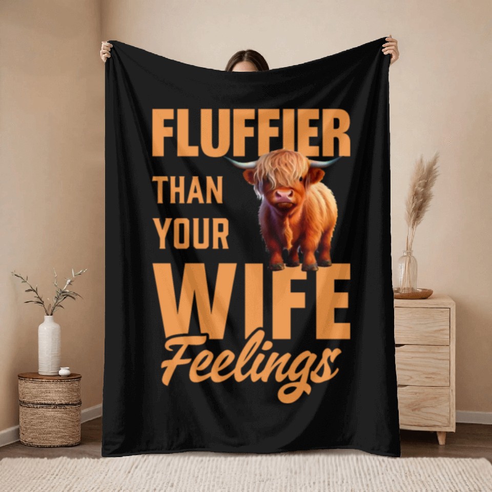 Buy stunning Fluffier Than Your Wife Feelings Highland Cow Throw Blankets or see more Throw Blankets products at Printblur right now to receive many amazing discounts!