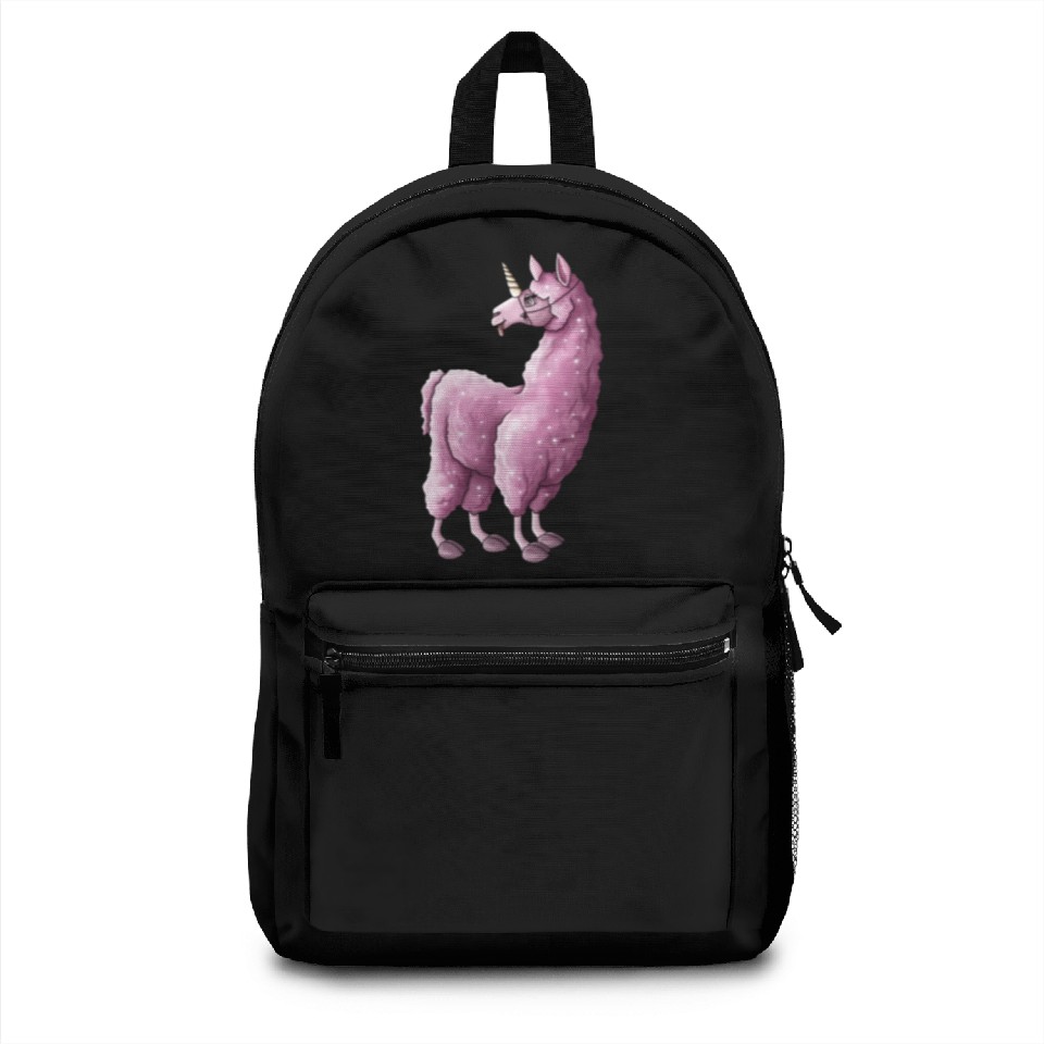 You're looking at the eye-catching product Fluffy llama unicorn pink illustration cartoon Backpacks For Black belong theme Backpacks at Printblur