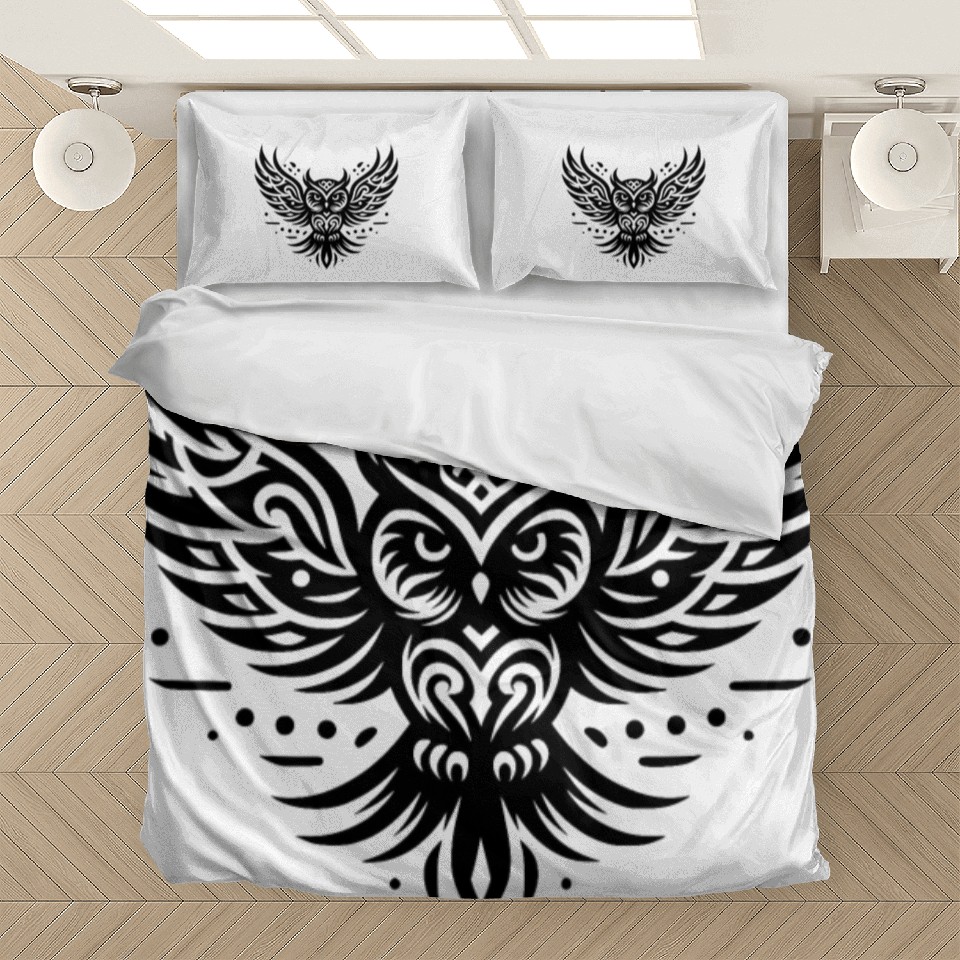 The product unique design you searched for is Flying Owl In Tattoo Style Bedding Sets For WHITE belong theme Bedding Sets at Printblur