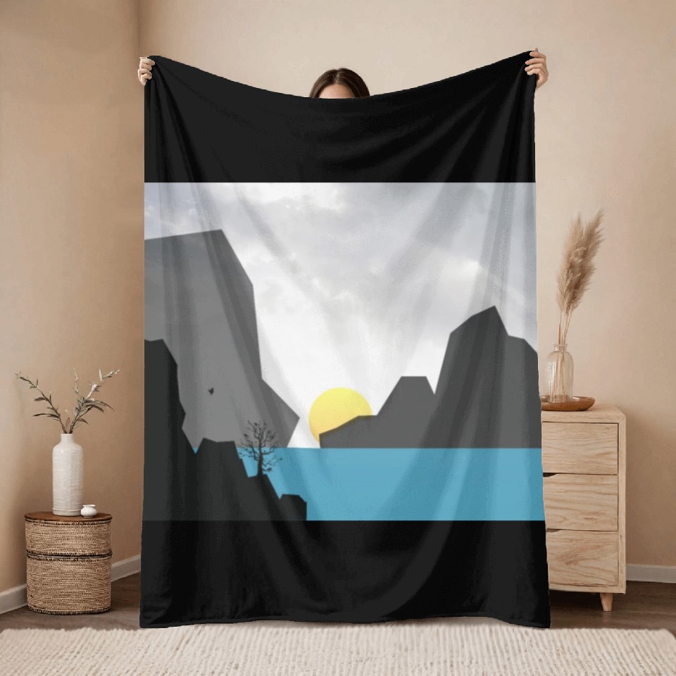 You are viewing an exclusive and elegant product Foggy Mountain Vintage sunset Throw Blankets For Black belong theme Throw Blankets at Printblur