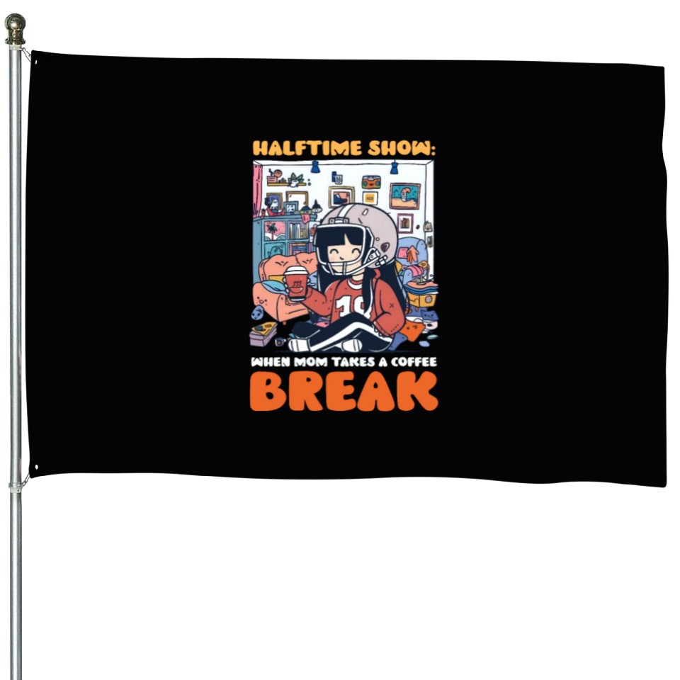 Buy eye-catching Football Mom Halftime Show: Mom Takes Coffee Break House Flags or see more House Flags products at Printblur shop now to explore many surprises from our shop!