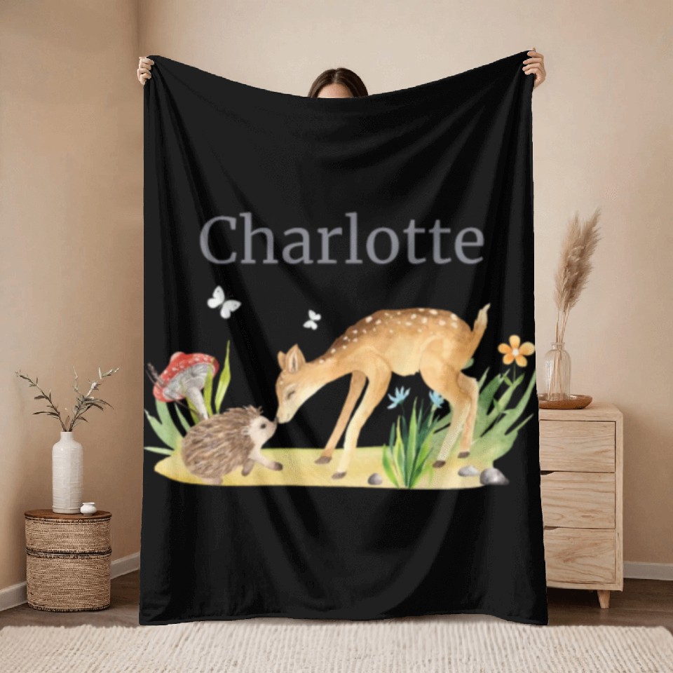 Shop for attractive Forest Animal Deer Hedgehog Flowers Name Charlotte Throw Blankets or see more Throw Blankets products on https://printblur.com right now!