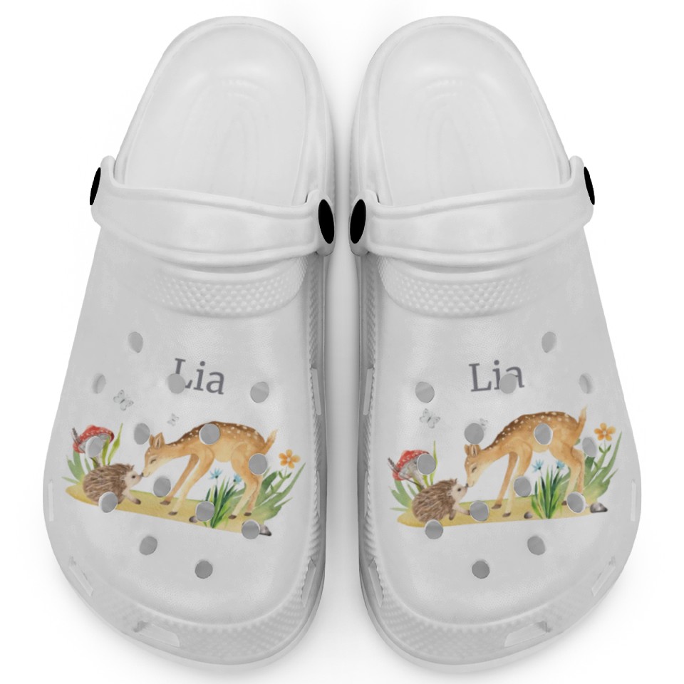 Buy stunning Forest Animal Deer Hedgehog Flowers Name Lia Clogs or see more Clogs products at Printblur right now to receive many amazing discounts!