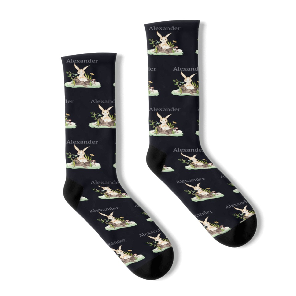 You are viewing one of the trendiest products Forest Animal Deer Rabbit Hedgehog Flowers Name Socks For Black belong theme Socks at Printblur