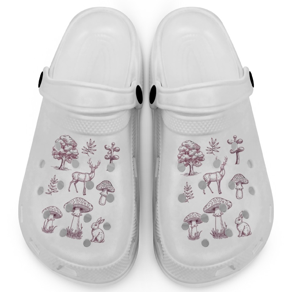 Forest life design trees, deer, mushrooms, rabbit Clogs