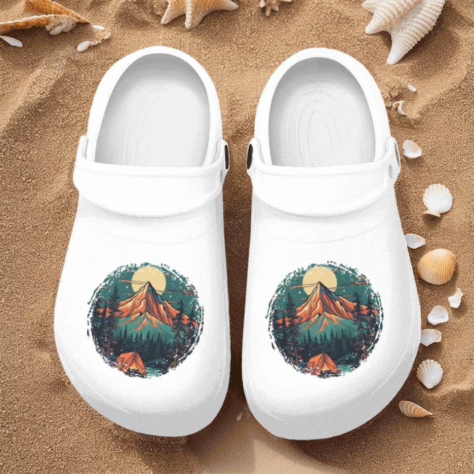 The item hot trend you're looking at is Forest nature trekking adventure Nurse Clogs For Men WHITE belong theme Nurse Clogs at Printblur