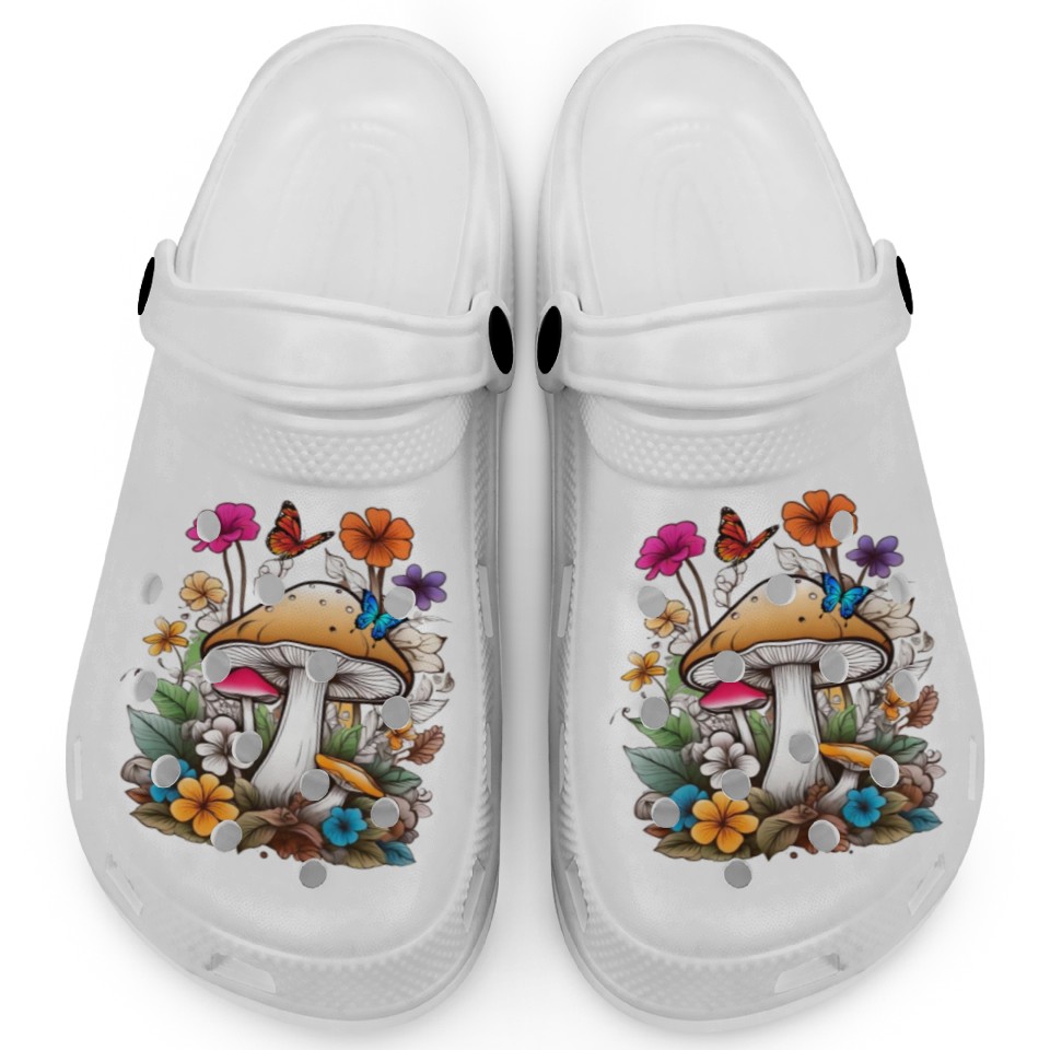 forest of mushrooms and flowers,funny mushrooms Clogs