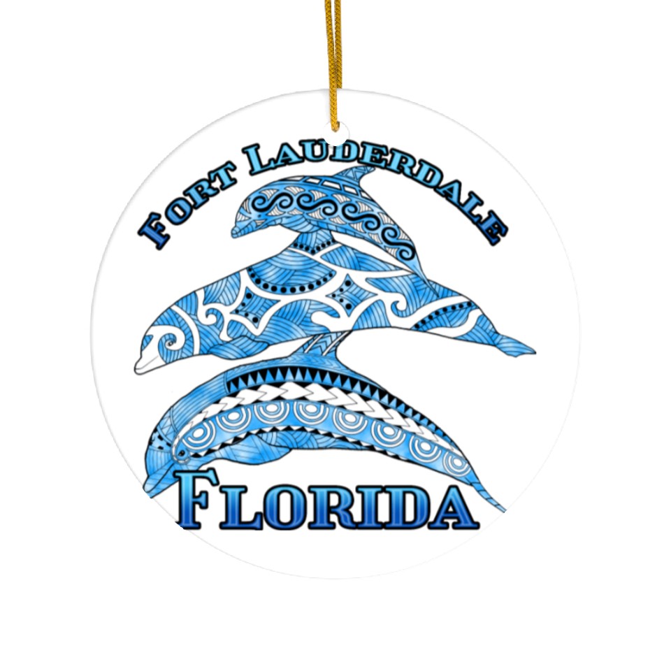 You are viewing one of the trendiest products Fort Lauderdale Florida Vacation Tribal Dolphins Ceramic Ornaments For WHITE belong theme Ceramic Ornaments at Printblur
