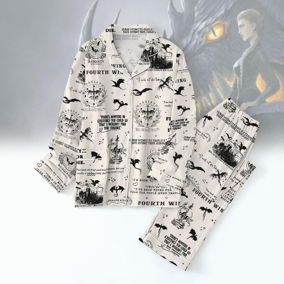 Shop for attractive Fourth Wing Basgiath Pajama Set, Dragon Academy Sleepwear, Romantasy Bookish Pajamas or see more Adult Pajamas Sets products on https://printblur.com right now!