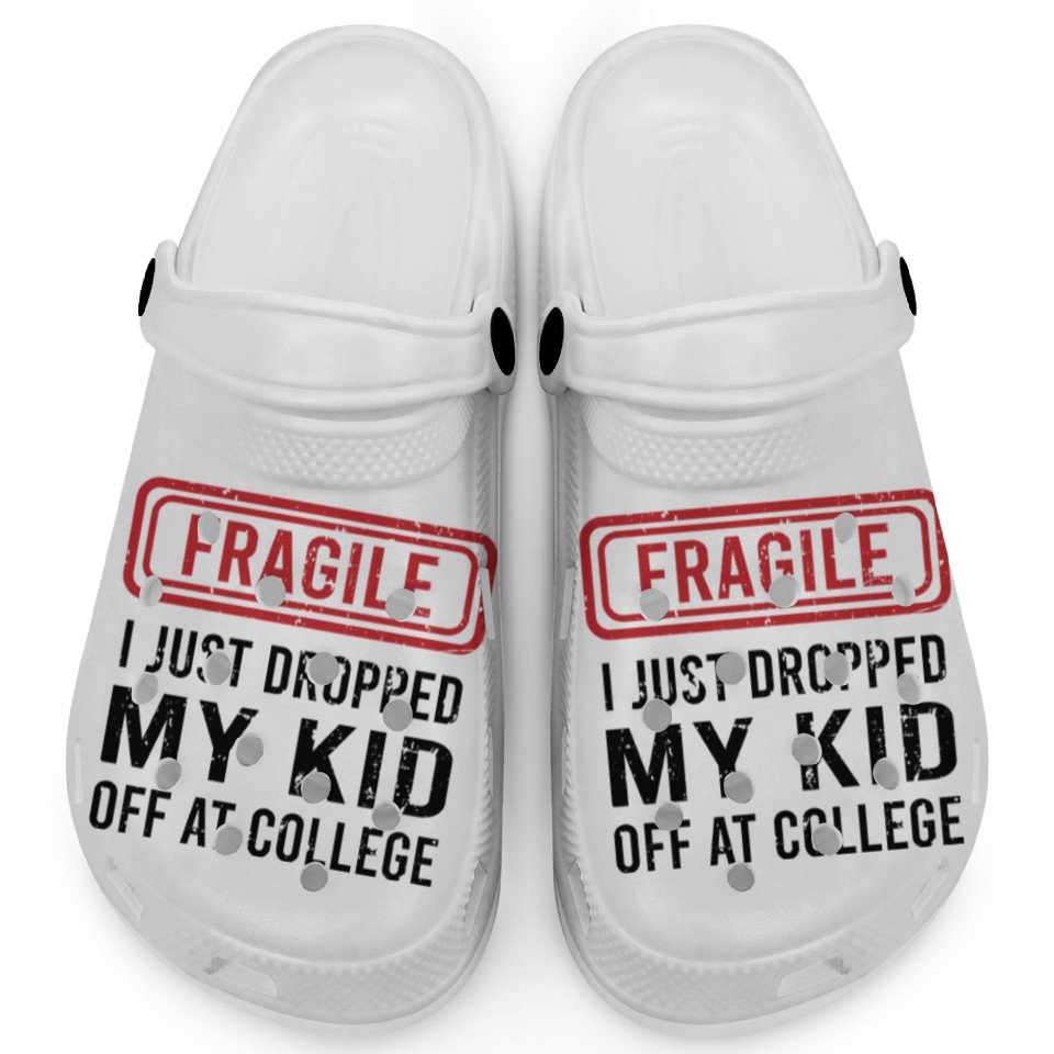 The item hot trend you're looking at is Fragile I Just Dropped My Kid Off at College Clogs For Kids WHITE belong theme Clogs at Printblur