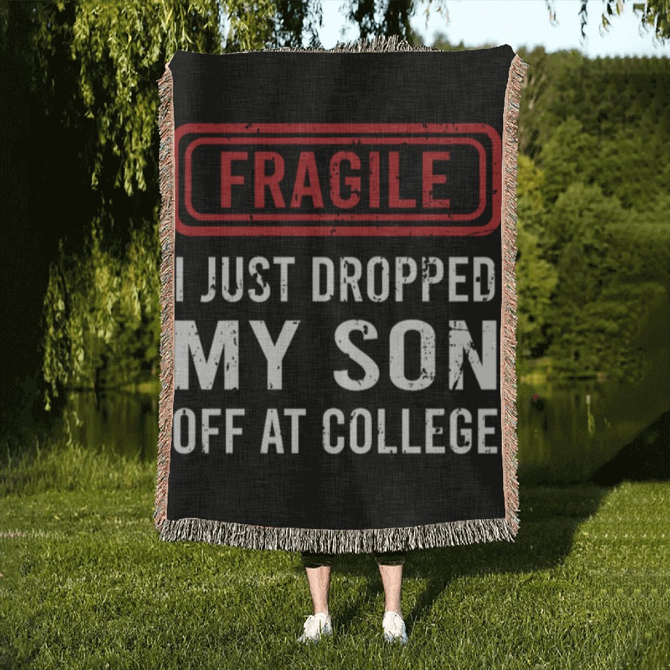 Shop for impressive Fragile I Just Dropped My Son Off at College Woven Blankets or see more Woven Blankets products right now on Printblur to enjoy your happiness!