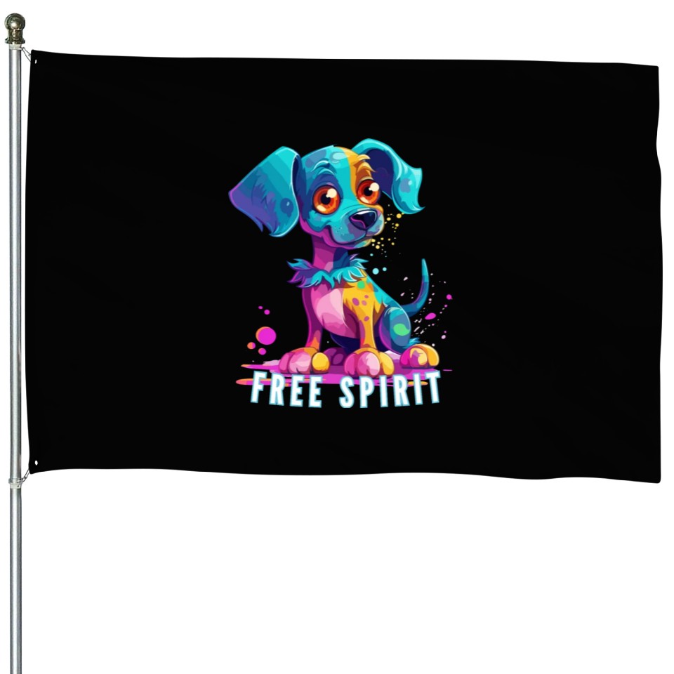 You're looking at the eye-catching product Free Spirit House Flags: Puppy Synthwave Graffiti Kids For Black belong theme House Flags at Printblur