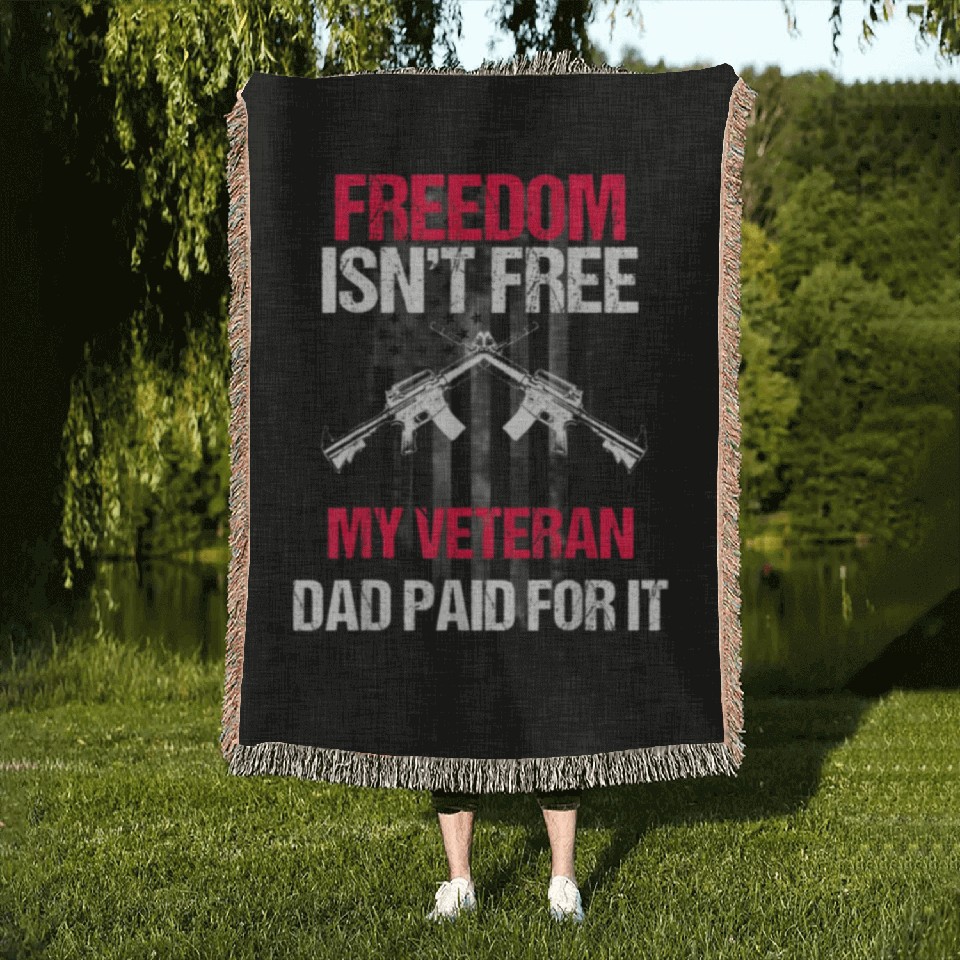 You are viewing one of the trendiest products Freedom Isn't Free | My Veteran Dad Woven Blankets 2022 For Black belong theme Woven Blankets at Printblur