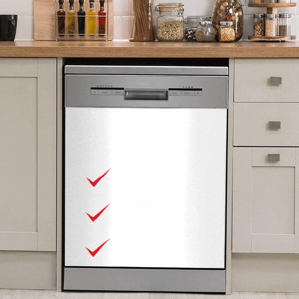 Simply peel and stick the cover to the front panel of your dishwasher