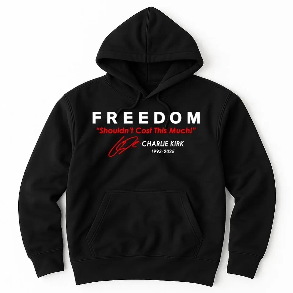 Buy eye-catching Freedom Shouldn't Cost This Much Charlie Kirk Signature Tribute 1993-2025 Hoodi or see more Hoodies products at Printblur shop now to explore many surprises from our shop!